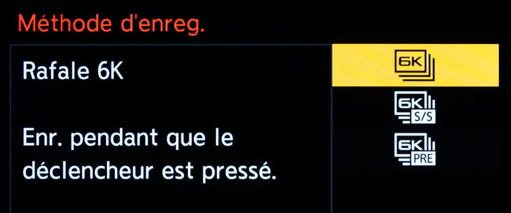 C’est un mode où une succession d’images sont prises, tant que le bouton du déclencheur photo est appuyé. C’est à dire que tant que le déclencheur est appuyé, ce sont plusieurs images par seconde qui sont envoyées dans la carte mémoire.