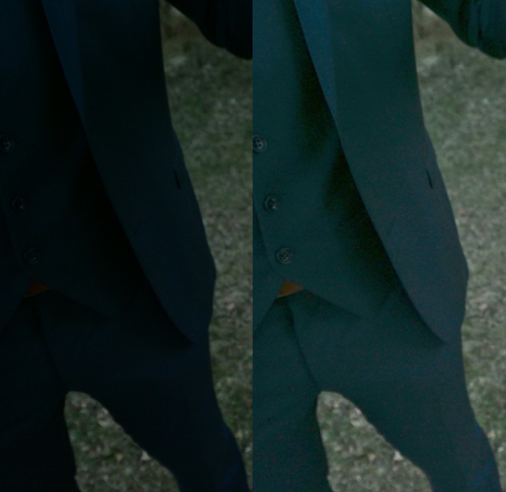 De la même manière, la sensibilité est liée à la qualité de l’image : le capteur a une sensibilité native aux alentours de 200 à 400 ISO/ASA. Pour filmer de nuit ou en milieu sombre, il faut augmenter la sensibilité sur la caméra. Malheureusement, plus on augmente la sensibilité, et plus le bruit apparaît, comme sur l’exemple ci-dessus, où là, c’est en post-production que l’on augmente la « sensibilité ». Il est donc préférable d’éviter les sensibilités élevées sur la caméra, sauf bien sûr si la situation nécessite de gagner en vitesse d’obturation.