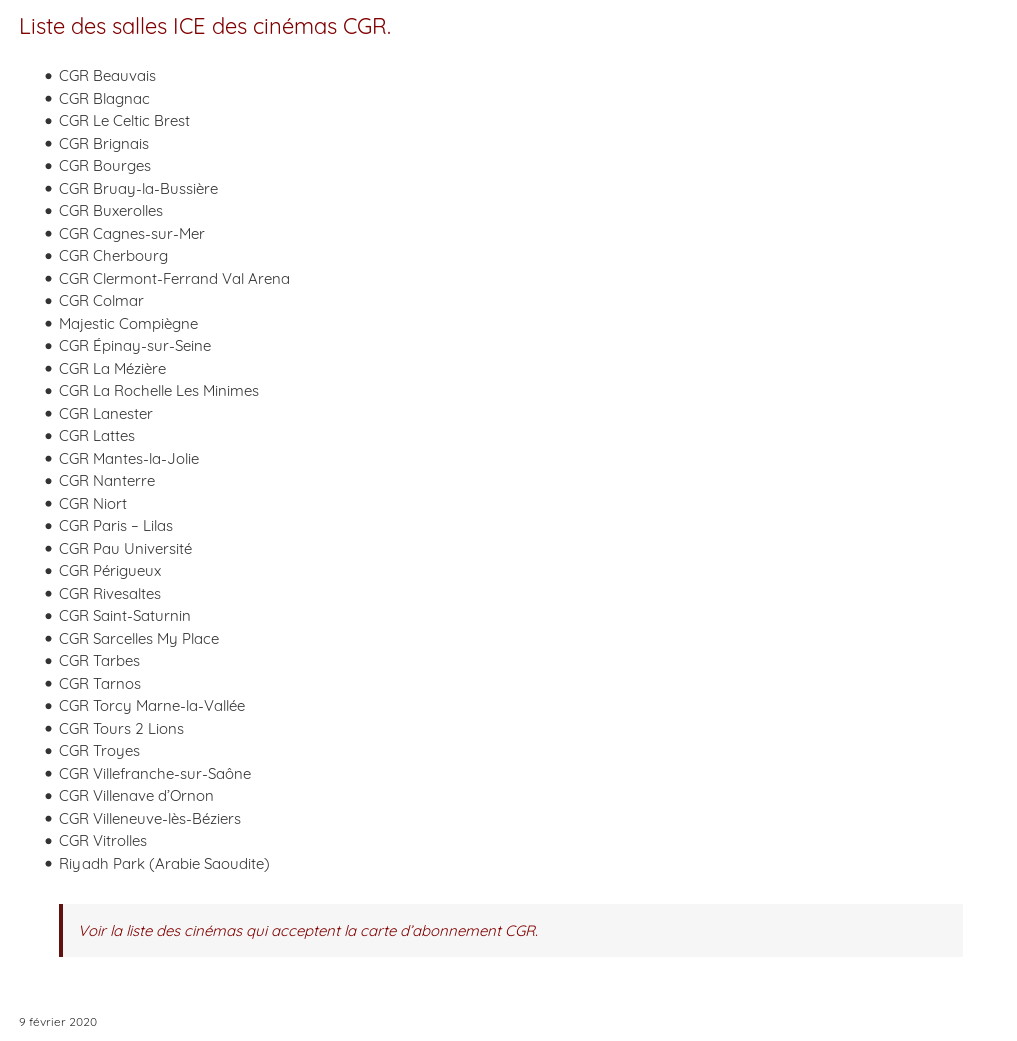 NB : En 2020, le réseau CGR compte 35 salles équipées de la projection en 4K…